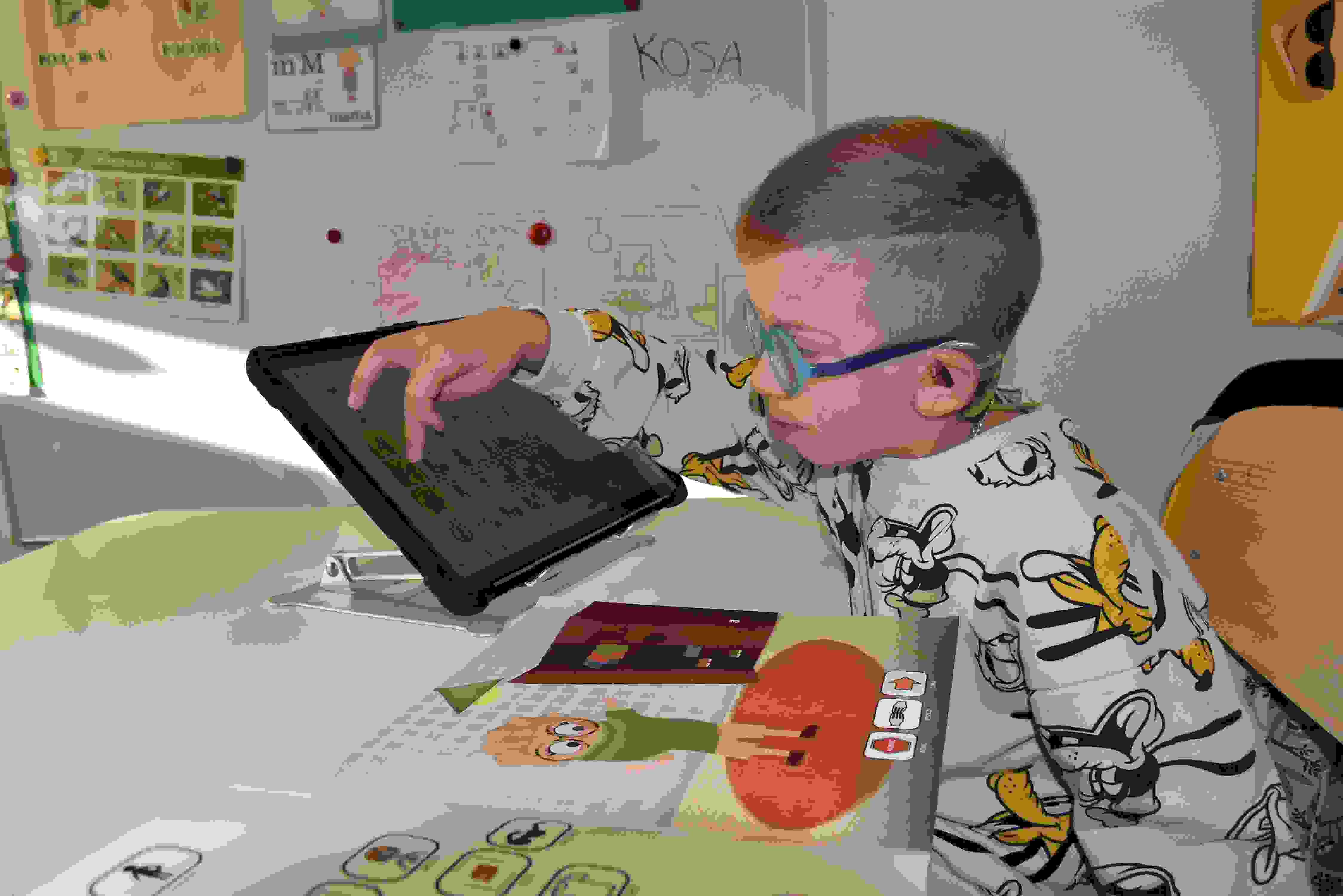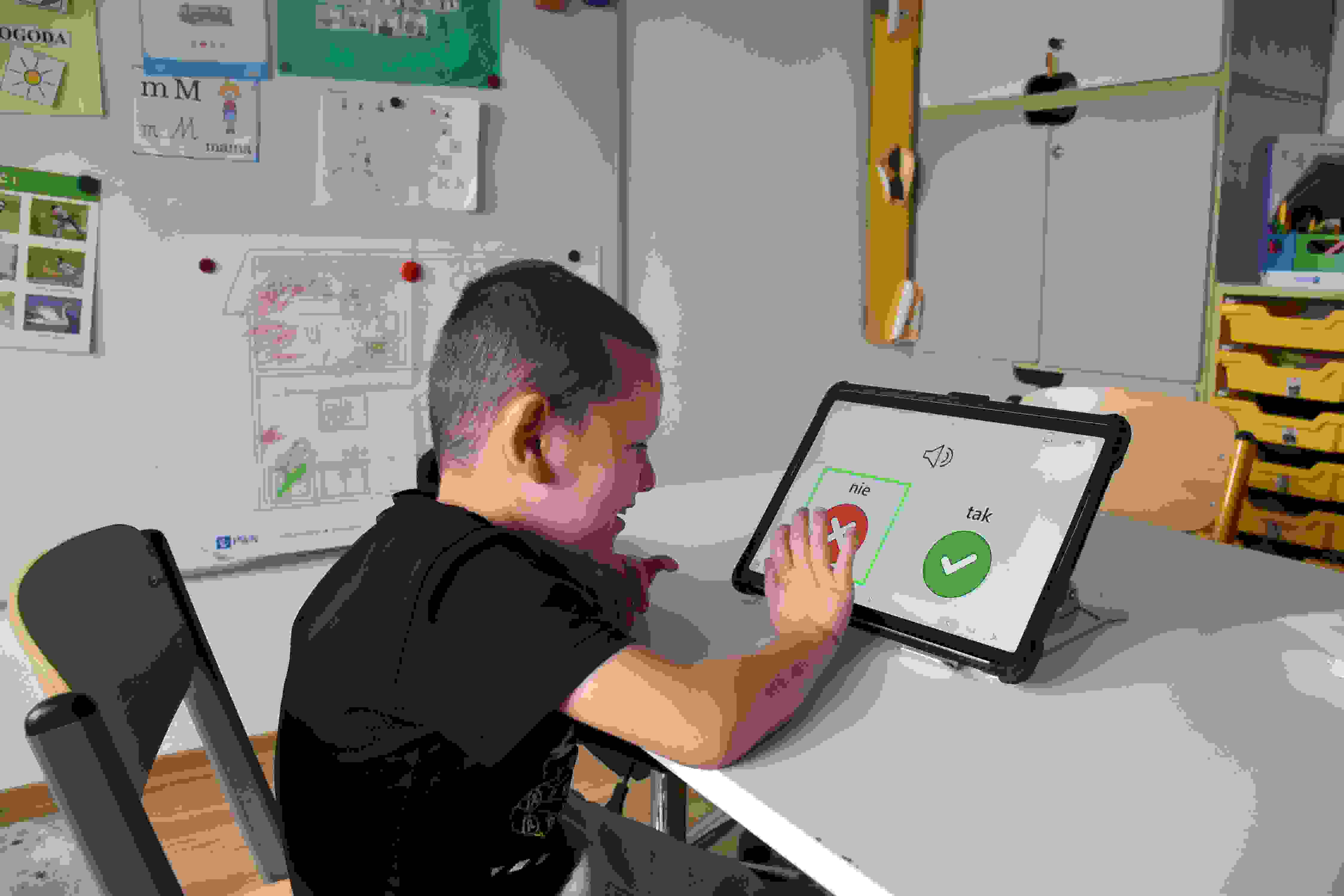 W ramach projektu „Droga do samodzielności…” podczas zajęć z panią Anią rozwijane były umiejętności komunikacyjne dzieci. Podczas zajęć uczyły się odpowiadać na pytania, budować zdania czy po prostu wyrażać swoje myśli w różnorodny, dopasowany do ich możliwości sposób. Uczniowie korzystali z książek komunikacyjnych, symboli MÓWiK, tabletu z systemem MÓWiK oraz nowoczesnego urządzenia neuroTAB. Urządzenie NeuroTAB to nowoczesny tablet intuicyjnie dostosowany do osób z niepełnosprawnością intelektualną i umożliwiający rozwój komunikacji oraz terapię, co zwiększa samodzielność w funkcjonowaniu u tych osób. NeuroTAB został zakupiony w ramach projektu „DROGA DO SAMODZIELNOŚCI – SPECJALISTYCZNE WSPARCIE REHABILITACYJNO-TERAPEUTYCZNE DLADZIECI Z NIEPEŁNOSPRAWNOŚCIĄ” współfinansowanego ze środków PFRON.