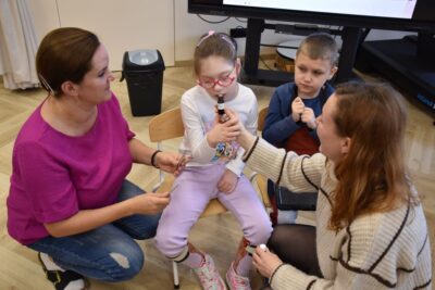 Zajęcia miały formę wesołej zabawy edukacyjnej, podczas której dzieci rozwijały swoją wrażliwość sensoryczną, poszerzały wiedzę o działaniu zmysłów oraz zdobywały kolejne „iskierki” pomagające lepiej rozumieć otaczający je świat.