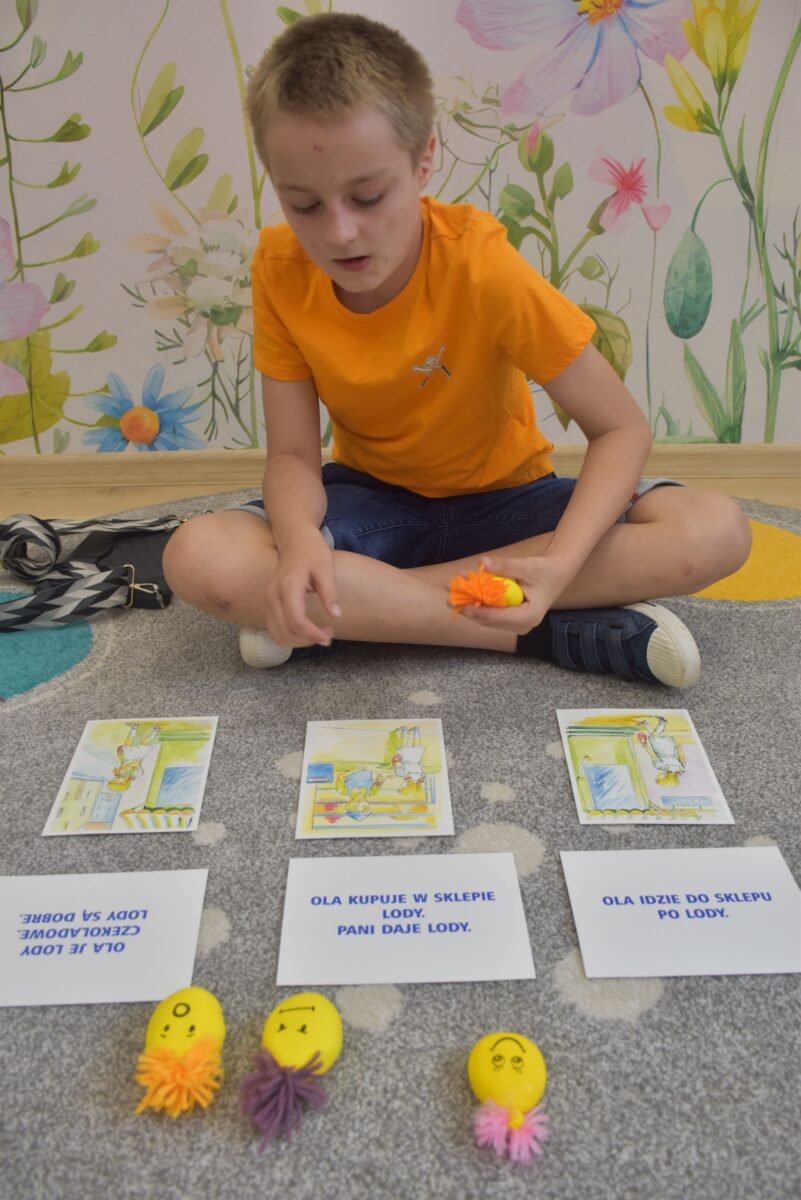 W ramach jednych z zajęć „Uczę się pilnie” uczeń rozwijał umiejętność porządkowania zdarzeń, a także rozpoznawanie i nazywanie emocji. Uczniowi zostały przedstawione dwie krótkie historyjki obrazkowe. Zadaniem chłopca było układanie obrazków według kolejności zdarzeń na podstawie czytanego tekstu przez terapeutę. Dopasowanie odpowiednich buziek z emocjami do wyrazu twarzy postaci z historyjki. Następnie zaprezentowanie własnej emocji […]