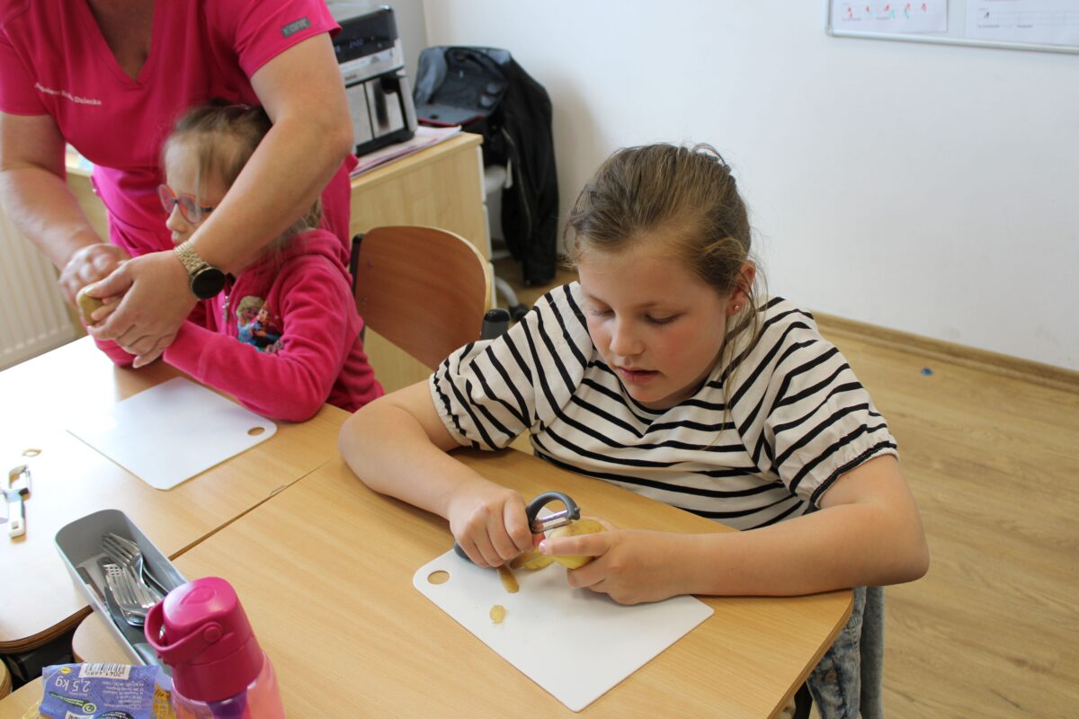 Podczas ostatnich zajęć kulinarnych uczniowie doskonalili swoje umiejętności praktyczne , ucząc się obierania ziemniaków oraz krojenia na frytki. Ćwiczyli posługiwanie się obieraczką i nożem, kształtowali samodzielność oraz rozwiali sprawność manualną. Zajęcia przebiegały w bezpiecznej i przyjaznej atmosferze. Zajęcia realizowane są w ranach projektu „DROGA DO SAMODZIELNOŚCI – SPECJALISTYCZNE WSPARCIE REHABILITACYJNO-TERAPEUTYCZNE DLADZIECI Z NIEPEŁNOSPRAWNOŚCIĄ” rok III […]