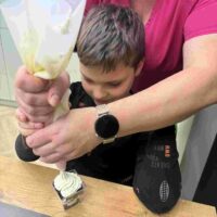 dla swoich ukochanych babć i dziadków. Kruszyli kruche ciasteczka, rozwijając sprawność manualną i koordynację ruchową. Ze skupieniem ubijali puszystą śmietanę, i dekorowali deserki.