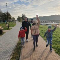 wykonując skłony, krążenia ramion, wymachy nóg oraz ćwiczenia oddechowe. Ruch na świeżym powietrzu sprawił im wiele radości, poprawił ich samopoczucie i dodał energii.