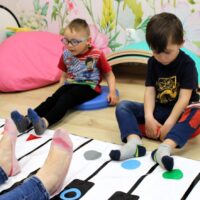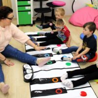 W ramach terapii przez sztukę uczestnicy rozwijali swoją kreatywność i wrażliwość muzyczną poprzez zabawę na wielkoformatowej klawiaturze . Wspólne muzykowanie sprzyjało integracji grupy, uczyło współpracy, koncentracji i reagowania na dźwięki. dzieci mogły wyrażać emocje w bezpieczny i twórczy sposób, a jednocześnie doskonaliły koordynację ruchową i poczucie rytmu. Zajęcia przebiegały w atmosferze radości i aktywnego zaangażowania.