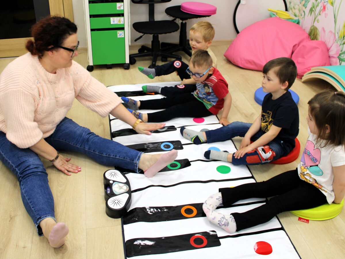 W ramach terapii przez sztukę uczestnicy rozwijali swoją kreatywność i wrażliwość muzyczną poprzez zabawę na wielkoformatowej klawiaturze . Wspólne muzykowanie sprzyjało integracji grupy, uczyło współpracy, koncentracji i reagowania na dźwięki. dzieci mogły wyrażać emocje w bezpieczny i twórczy sposób, a jednocześnie doskonaliły koordynację ruchową i poczucie rytmu. Zajęcia przebiegały w atmosferze radości i aktywnego zaangażowania.