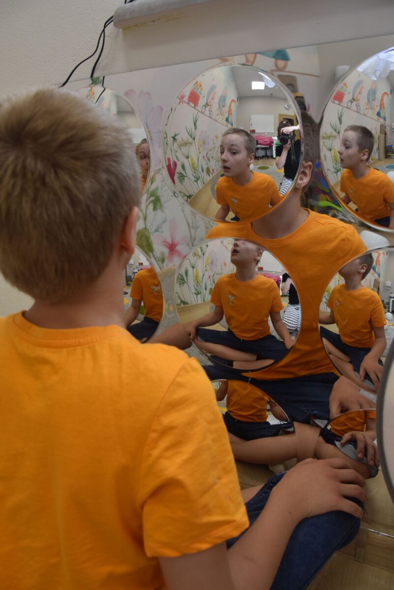 W ramach jednych z zajęć „Uczę się pilnie” uczeń rozwijał umiejętność porządkowania zdarzeń, a także rozpoznawanie i nazywanie emocji. Uczniowi zostały przedstawione dwie krótkie historyjki obrazkowe. Zadaniem chłopca było układanie obrazków według kolejności zdarzeń na podstawie czytanego tekstu przez terapeutę. Dopasowanie odpowiednich buziek z emocjami do wyrazu twarzy postaci z historyjki. Następnie zaprezentowanie własnej emocji rysunkiem na balonie, a także ćwiczenie wyrazów twarzy w lustrze.